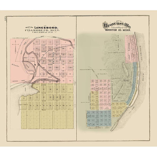 Lanesboro, Brownsville Minnesota - Andreas 1874 Gold Ornate Wood Framed Art Print with Double Matting by Andreas