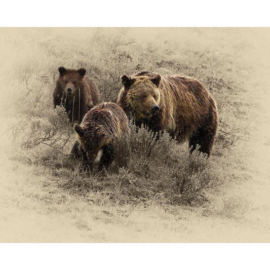 Grizzly Family Gold Ornate Wood Framed Art Print with Double Matting by Brown, Jim