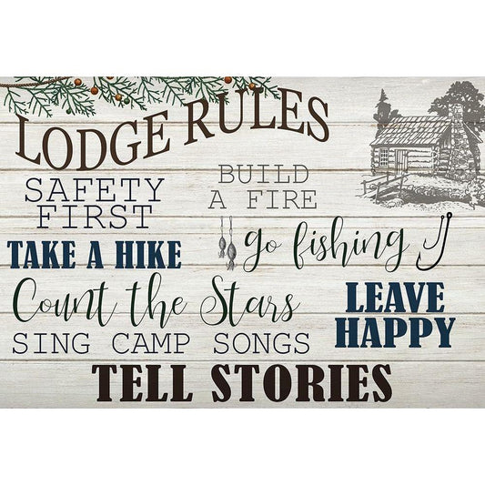 Lodge Rules Gold Ornate Wood Framed Art Print with Double Matting by Kimberly, Allen