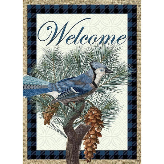 Blue Jay Welcome Gold Ornate Wood Framed Art Print with Double Matting by Kimberly, Allen