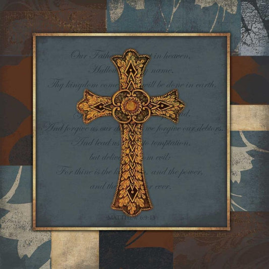 Cross our father Gold Ornate Wood Framed Art Print with Double Matting by Grey, Jace