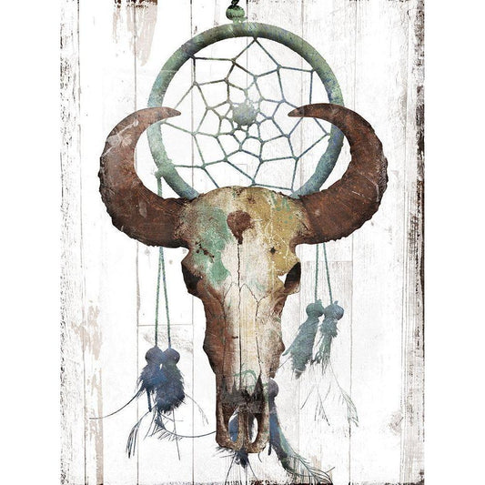 Bull With Dreamcatcher Gold Ornate Wood Framed Art Print with Double Matting by Grey, Jace
