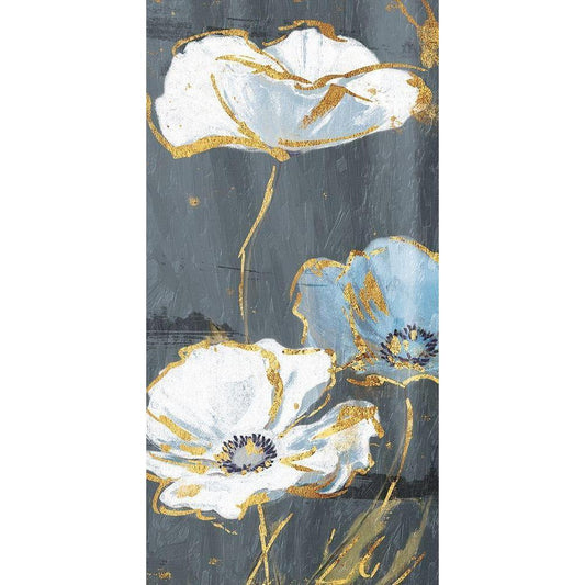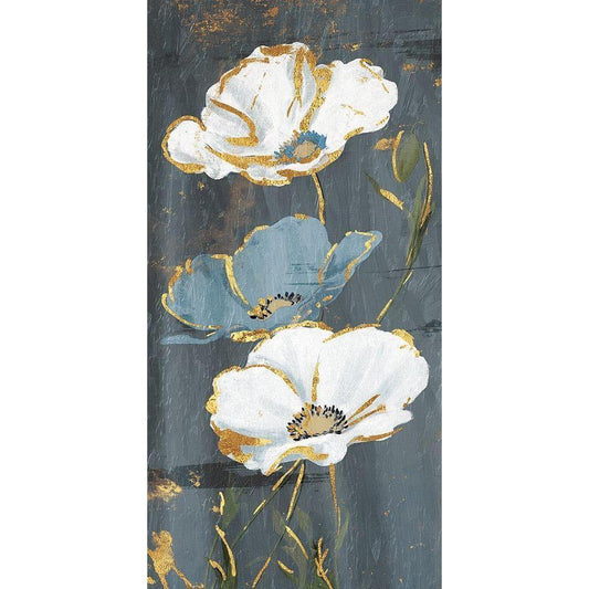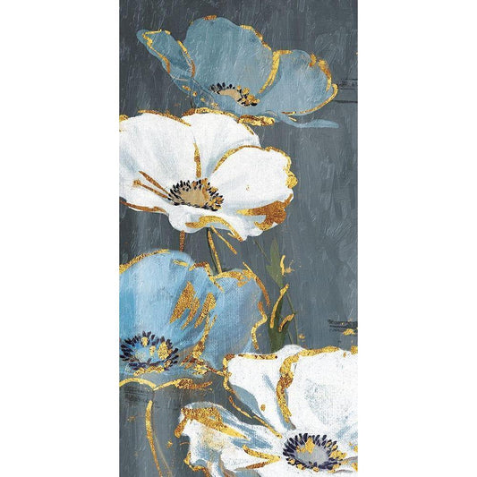 Blue Gold Florals Mate Three Gold Ornate Wood Framed Art Print with Double Matting by Grey, Jace