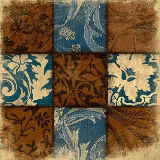 9 Patch BLUEBROWN Gold Ornate Wood Framed Art Print with Double Matting by Grey, Jace