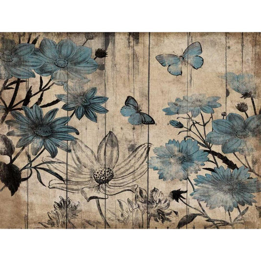 Blue Floral Wood Gold Ornate Wood Framed Art Print with Double Matting by Grey, Jace