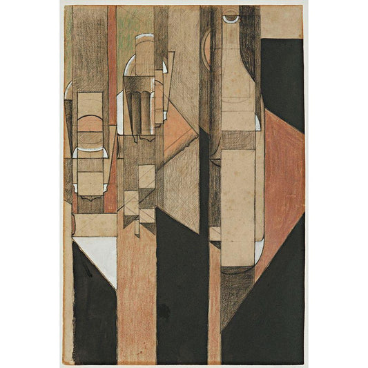 Juan Gris - Glass and Bottle Gold Ornate Wood Framed Art Print with Double Matting by Vintage Apple Collection