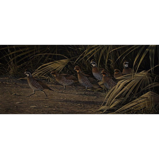 Breaking Cover - Bobwhites Gold Ornate Wood Framed Art Print with Double Matting by Goebel, Wilhelm