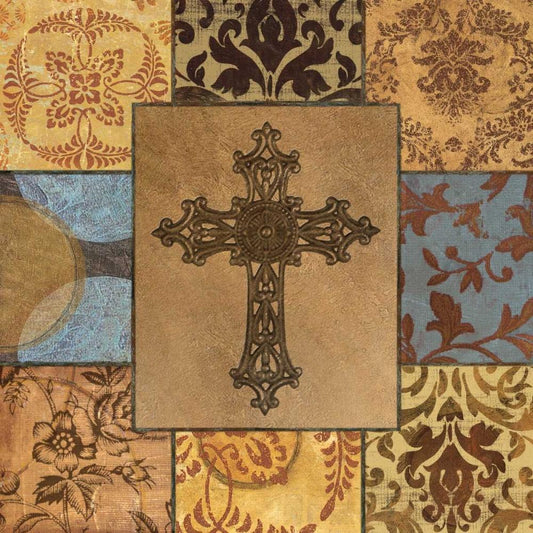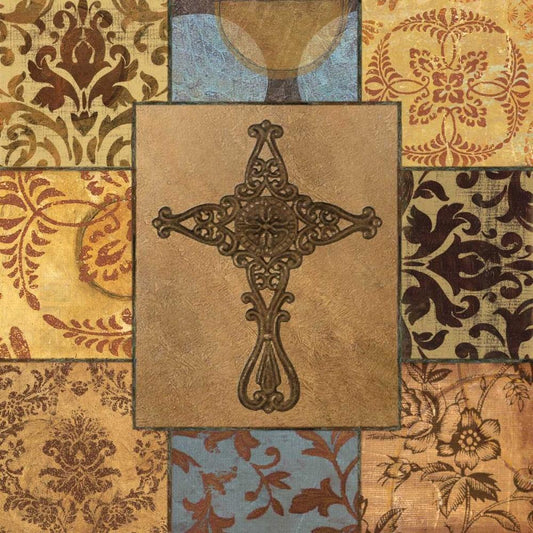 Patchwork Cross I Gold Ornate Wood Framed Art Print with Double Matting by Williams, Todd