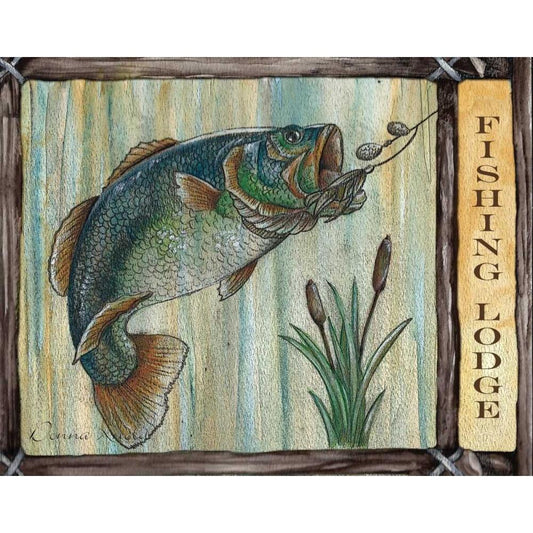 Lodge Fish Gold Ornate Wood Framed Art Print with Double Matting by Knold, Donna