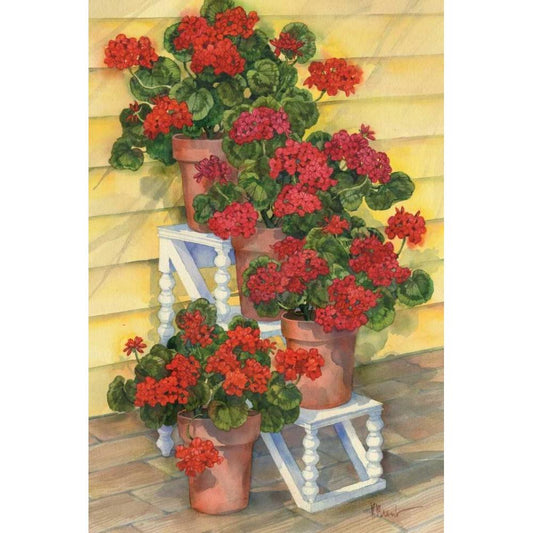 Spindle Shelf Geraniums Gold Ornate Wood Framed Art Print with Double Matting by Brent, Paul
