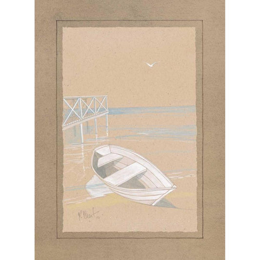 White Dinghy Gold Ornate Wood Framed Art Print with Double Matting by Brent, Paul