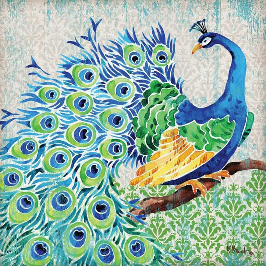 Patterned Peacock I Gold Ornate Wood Framed Art Print with Double Matting by Brent, Paul