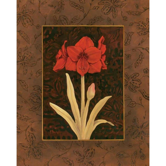 Damask Amaryllis Gold Ornate Wood Framed Art Print with Double Matting by Brent, Paul