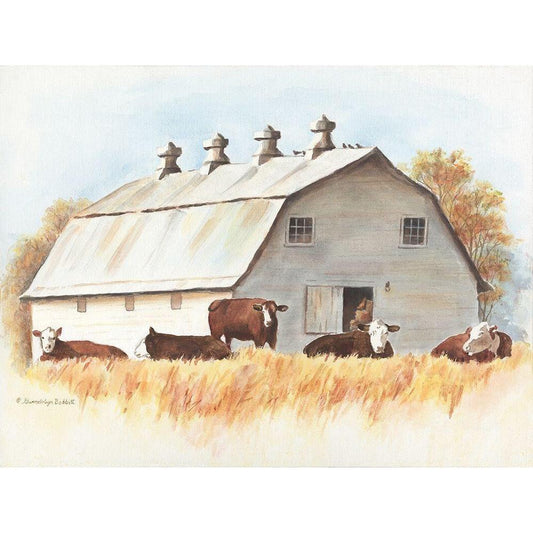 White Barn and Cattle Gold Ornate Wood Framed Art Print with Double Matting by Babbitt, Gwendolyn