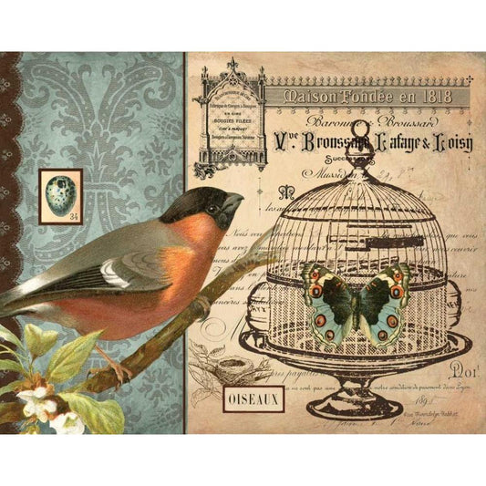 Bird and Cage I Gold Ornate Wood Framed Art Print with Double Matting by Babbit, Gwendolyn