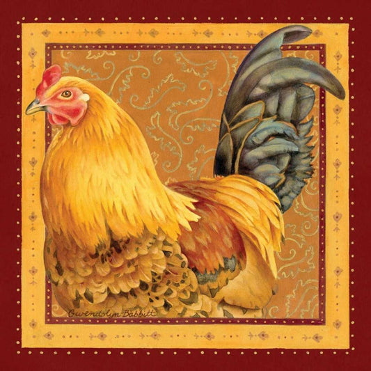 Country Rooster I Gold Ornate Wood Framed Art Print with Double Matting by Babbitt, Gwendolyn
