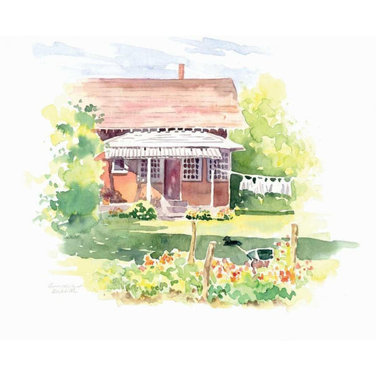 Ridgefield Cottage Gold Ornate Wood Framed Art Print with Double Matting by Babbitt, Gwendolyn