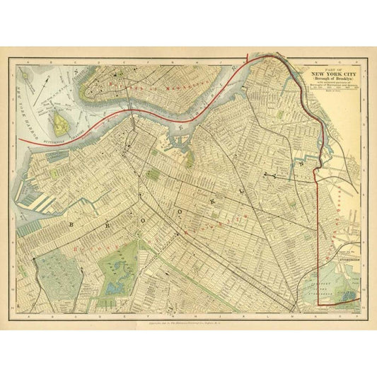 Brooklyn Map Gold Ornate Wood Framed Art Print with Double Matting by Babbitt, Gwendolyn