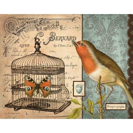 Bird and Cage II Gold Ornate Wood Framed Art Print with Double Matting by Babbit, Gwendolyn