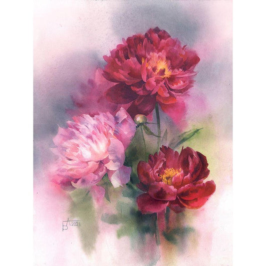 Burgundy and Pink Peonies Black Modern Wood Framed Art Print by Besedina, Anastasiia