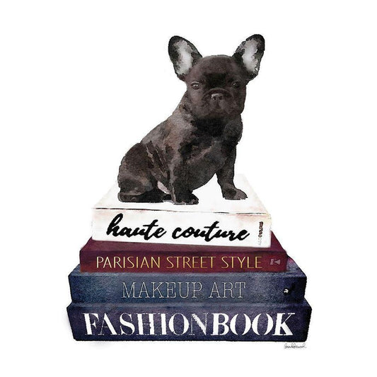 Book Stack Frenchie Black Modern Wood Framed Art Print by Greenwood, Amanda