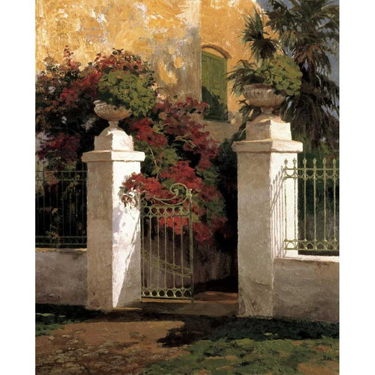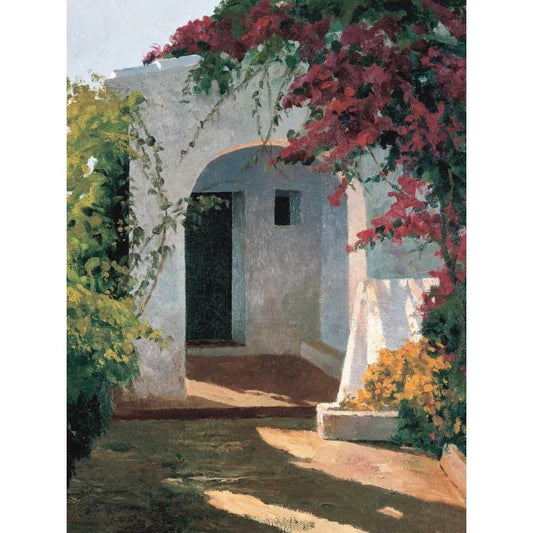 Courtyard Blossoms Black Modern Wood Framed Art Print by Romeu, Poch