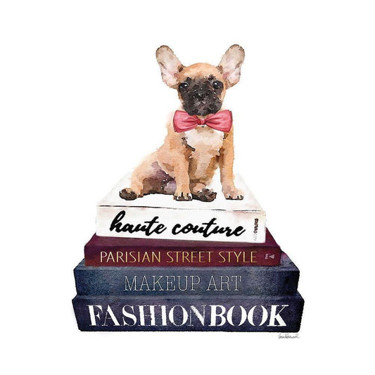 Book Stack Frenchie Gold Ornate Wood Framed Art Print with Double Matting by Greenwood, Amanda