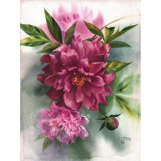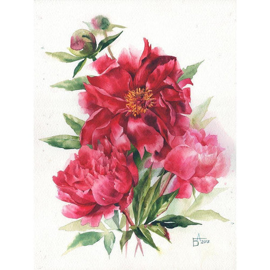 Burgundy and Pink Peonies Gold Ornate Wood Framed Art Print with Double Matting by Besedina, Anastasiia