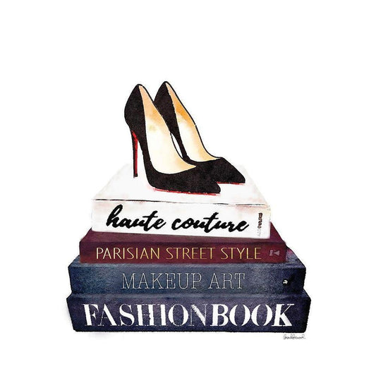 Bookstack Shoes White Modern Wood Framed Art Print by Greenwood, Amanda