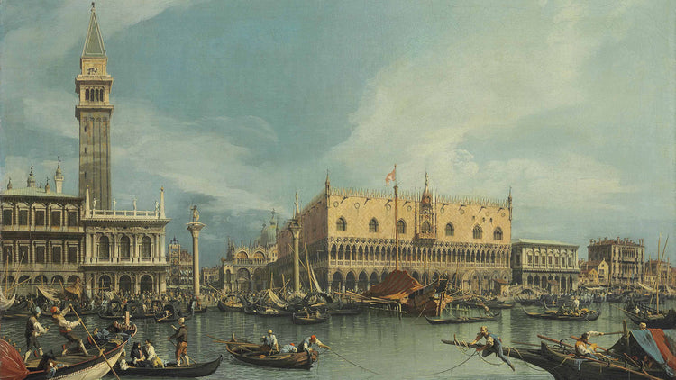 The Piazzetta 20x24 Black Modern Wood Framed Art Print Poster by Canaletto