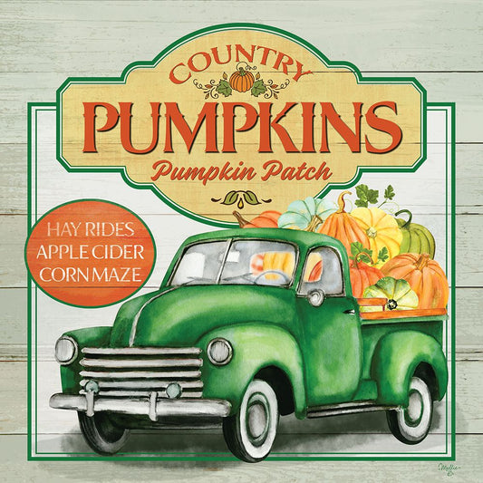 Blue Truck Pumpkin Patch Black Ornate Wood Framed Art Print with Double Matting by Michelle, Misty