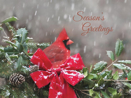 Seasons Greetings Cardinal Black Ornate Wood Framed Art Print with Double Matting by Deiter, Lori