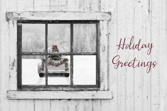 Holiday Greetings Window Black Ornate Wood Framed Art Print with Double Matting by Deiter, Lori