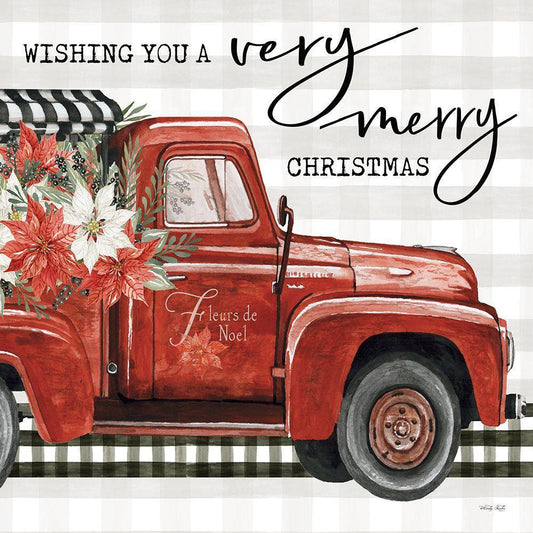 Merry Christmas Truck Black Ornate Wood Framed Art Print with Double Matting by Jacobs, Cindy