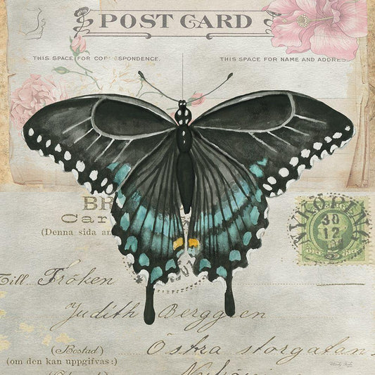 Postcard Butterfly II Black Ornate Wood Framed Art Print with Double Matting by Jacobs, Cindy