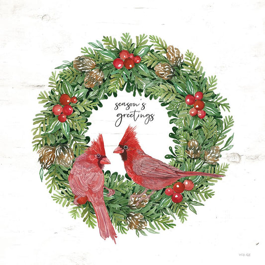 Seasons Greetings Cardinal Wreath Black Ornate Wood Framed Art Print with Double Matting by Jacobs, Cindy