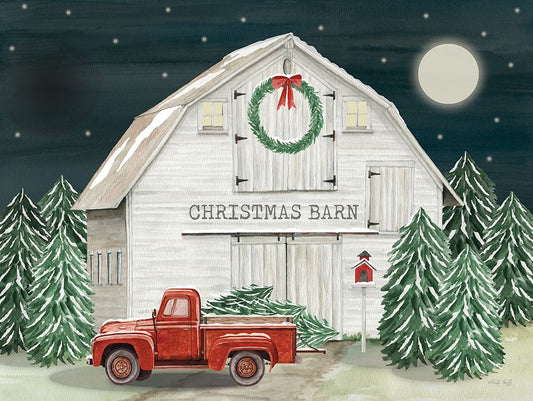 Starry Night Christmas Barn Black Ornate Wood Framed Art Print with Double Matting by Jacobs, Cindy