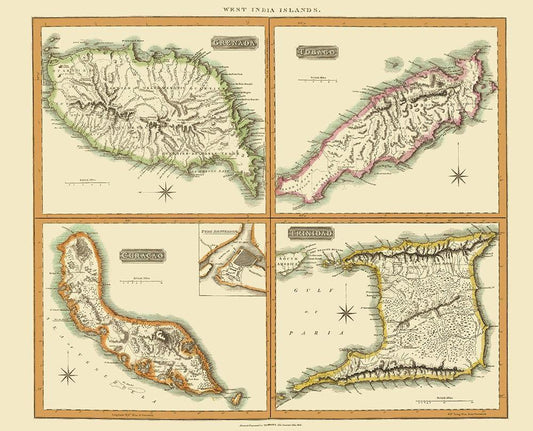 Caribbean Grenada - Lucas 1823 White Modern Wood Framed Art Print with Double Matting by Lucas