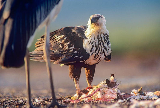 African Fish Eagle over Flamigo Carcass-Kenya White Modern Wood Framed Art Print with Double Matting by Fitzharris, Tim