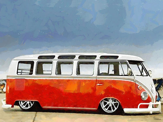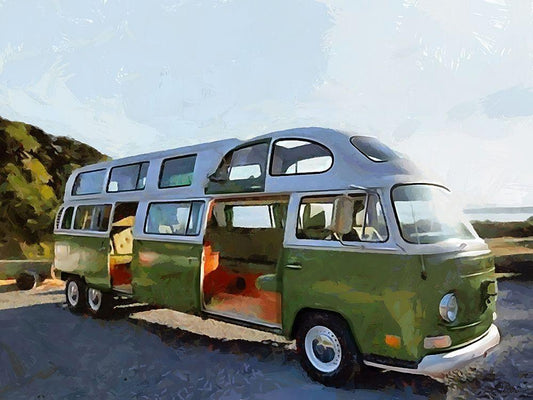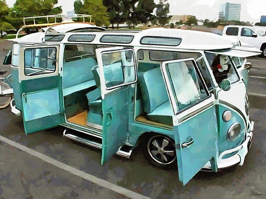 Good Old VW Van IX White Modern Wood Framed Art Print with Double Matting by Medeiros, Celito