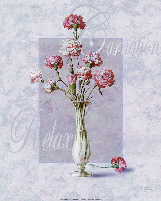 Carnations in Vase White Modern Wood Framed Art Print with Double Matting by Unknown