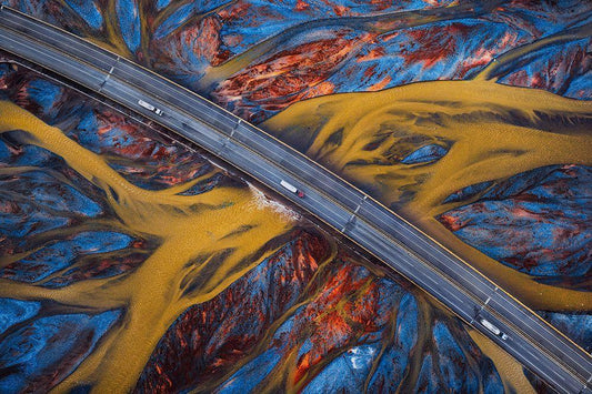 Above The Colorful River White Modern Wood Framed Art Print with Double Matting by Tianqi