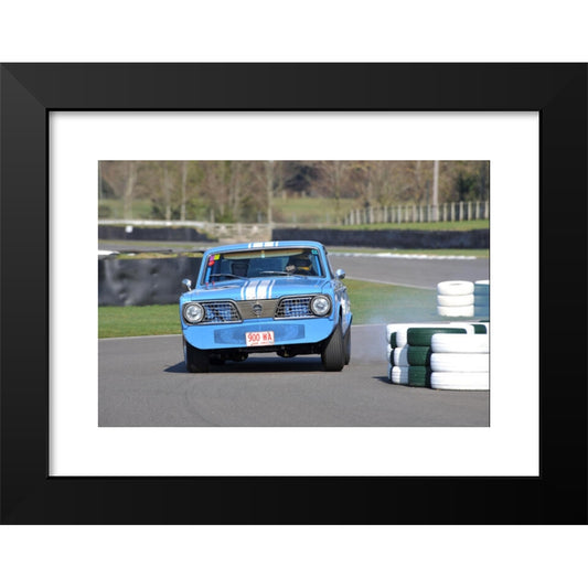 1960's Image Collection by Matthew Richardson - Black Modern Wood Framed Art Print Titled: Classic 1960s race car going through the chicane at Goodwood motor circuit - Mk1 Ford Cortina