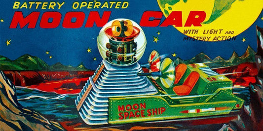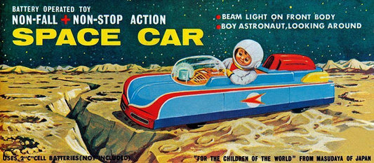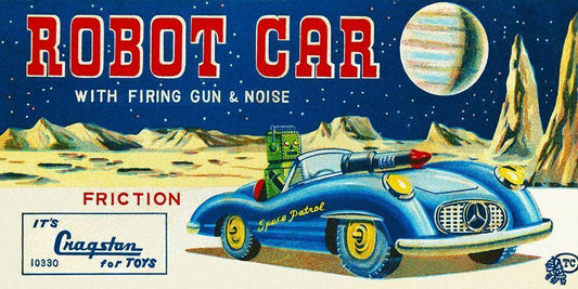 Battery Operated Space Patrol Car White Modern Wood Framed Art Print with Double Matting by Retrotrans