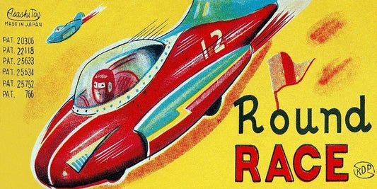 Round Race Rocket Car White Modern Wood Framed Art Print with Double Matting by Retrotrans