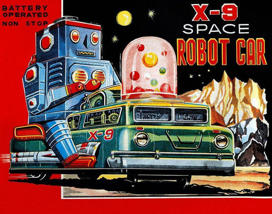 X-9 Space Robot Car White Modern Wood Framed Art Print with Double Matting by Retrobot