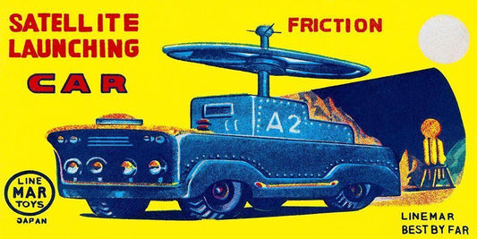 Satellite Launching Car A2 White Modern Wood Framed Art Print with Double Matting by Retrotrans