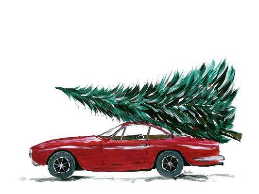 Eighties car carrying a Christmas tree Black Ornate Wood Framed Art Print with Double Matting by Laiz Blursbyai, Rosana