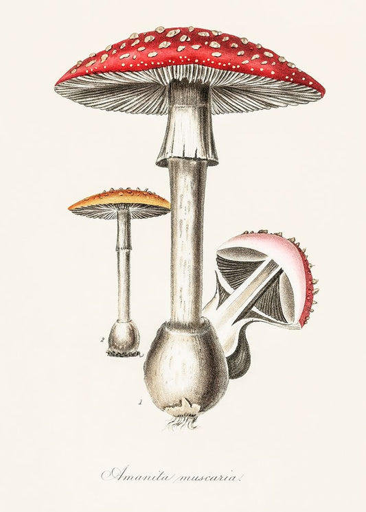 Amanita Muscaria Illustration. Medical Botany 1836 Black Ornate Wood Framed Art Print with Double Matting by Pictufy