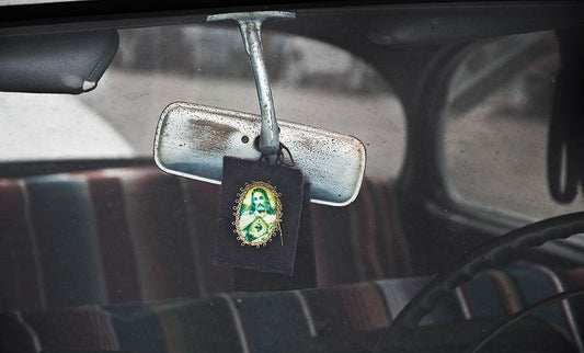 Rear View Mirror Black Ornate Wood Framed Art Print with Double Matting by Butterworth, Larry